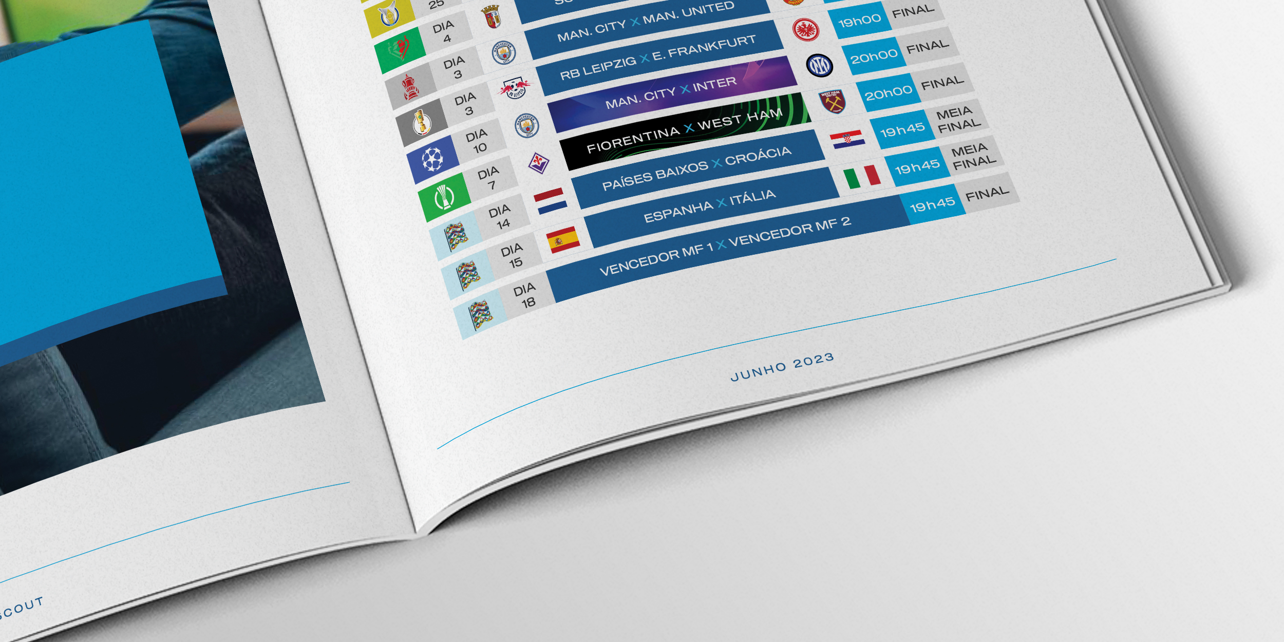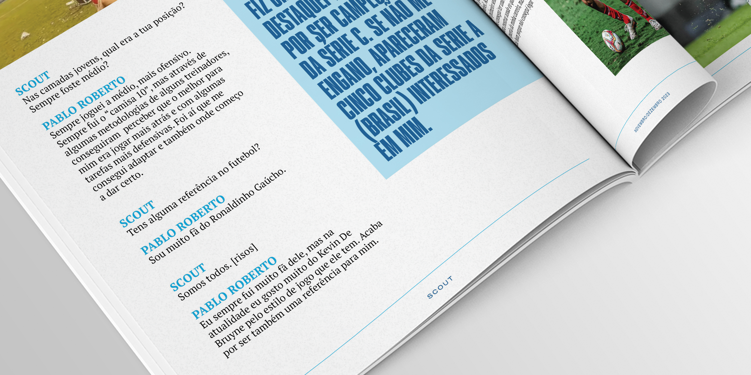 I was challenged by SCOUT to design and paginate their monthly football magazine — a natural extension of our collaboration since 2020, when I began creating social media content for them. For nearly three years, I worked on bringing each issue to life, balancing rich statistics, in-depth articles on clubs, fun quizzes, and exclusive player interviews. My goal was to create clean, engaging layouts that made complex information easy to navigate and visually appealing. This project was a joy to work on and gave me invaluable experience in the field of editorial design, sharpening my skills in storytelling through layout.